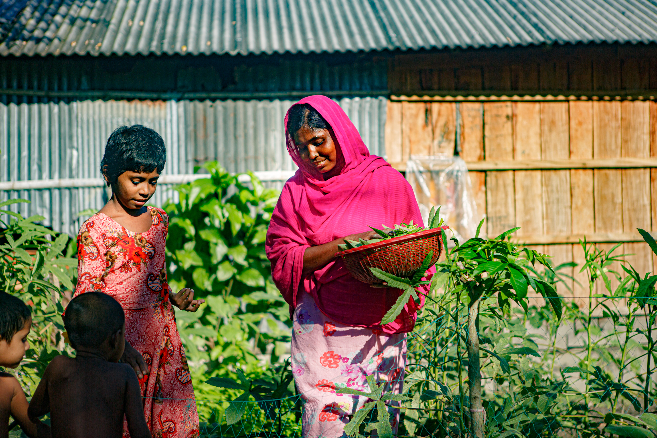 producing vegetables for food security, shade, and modest income generation through surplus sales