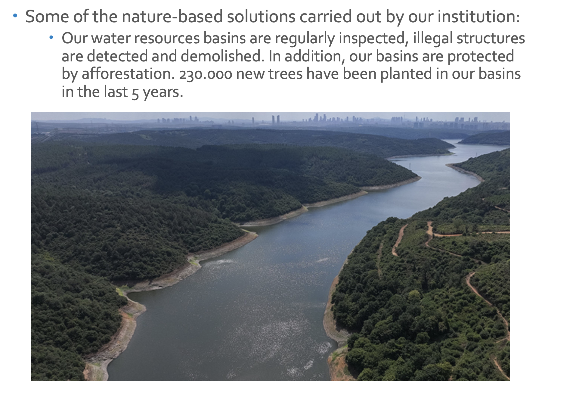 The city’s response combined NbS and engineering. Streams were rehabilitated into Life Valleys that act as flood buffers, recreational parks, and biodiversity corridors. Over 230,000 trees were planted in water basins, illegal construction was removed from catchments, and rainwater harvesting became mandatory for large new buildings. These NbS were integrated into ISKI’s broader water system, complementing tunnels, dams, and treatment plants.