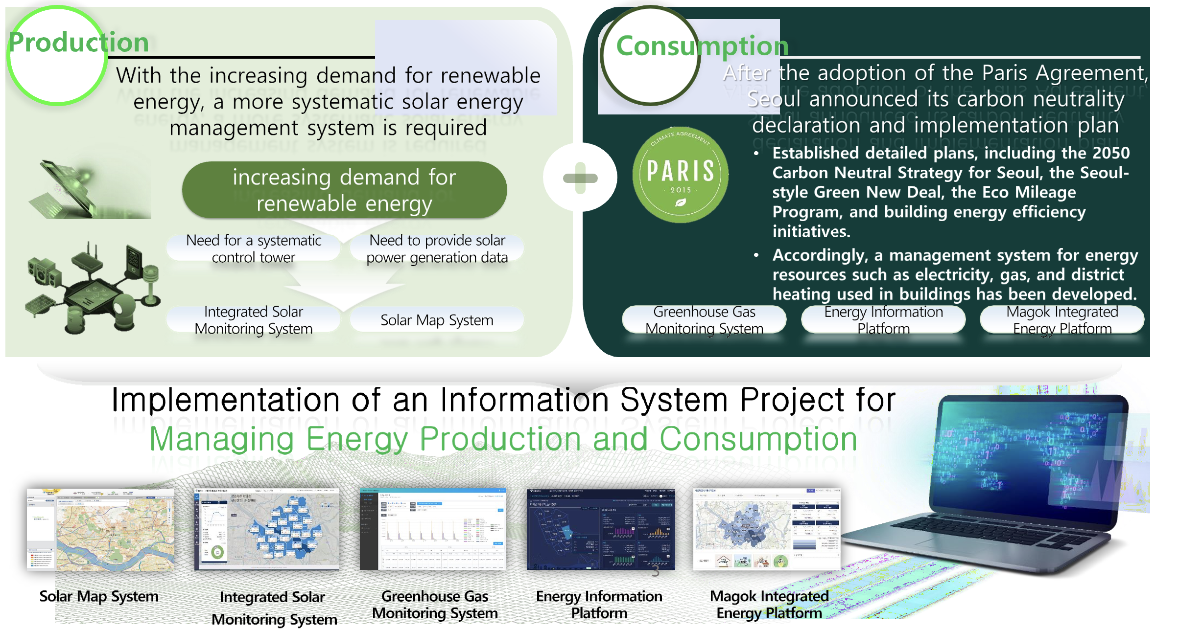 The Seoul Energy Integration System consolidates real-time data from diverse energy sources into a single platform. This enables better planning, smarter investment, efficient operation of renewables, and greater transparency for citizens.